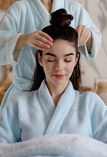 The facial/scalp massage is a treatment, but it is also an experience designed to be tailored to the serene settings of our massage center. Each session is your treat, prepared according to your specific needs and preferences, so each touch becomes deeply personalized. In our tranquil environment, you will be immersed in tranquility and luxury. Details and quality matter; hence, we create a comfortable environment where all the elements are combined to suit your comfort and relaxation.